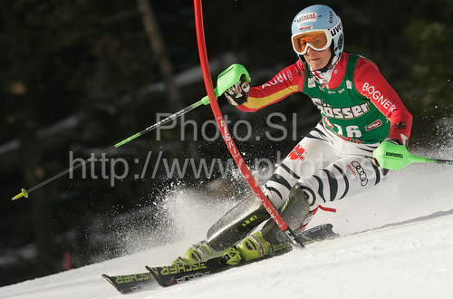 : Kathrin Hoelzl of Germany skiing in first run of women slalom World Cup race in Lienz, Austra. Slalom race of Women Audi FIS Alpine skiing World Cup 2009-10 was held in Lienz, Austria, on 29th of December 2009.