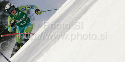: Marusa Ferk of Slovenia skiing in first run of women slalom World Cup race in Lienz, Austra. Slalom race of Women Audi FIS Alpine skiing World Cup 2009-10 was held in Lienz, Austria, on 29th of December 2009.