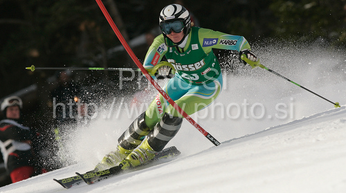 : Marusa Ferk of Slovenia skiing in first run of women slalom World Cup race in Lienz, Austra. Slalom race of Women Audi FIS Alpine skiing World Cup 2009-10 was held in Lienz, Austria, on 29th of December 2009.