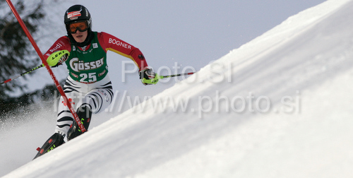 : Christina Geiger of Germany skiing in first run of women slalom World Cup race in Lienz, Austra. Slalom race of Women Audi FIS Alpine skiing World Cup 2009-10 was held in Lienz, Austria, on 29th of December 2009.