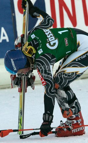 Lienz ,Austria - 29.12.2009 : Tanja Poutiainen of Finland reacts in finish of second run of women slalom World Cup race in Lienz, Austra, after she lost her third place after second run due broken pole. Slalom race of Women Audi FIS Alpine skiing World Cup 2009-10 was held in Lienz, Austria, on 29th of December 2009. Photo by: Primoz Jeroncic