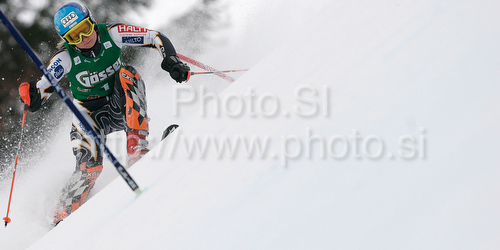 : Third after first run Tanja Poutiainen of Finland skiing in first run of women slalom World Cup race in Lienz, Austra. Slalom race of Women Audi FIS Alpine skiing World Cup 2009-10 was held in Lienz, Austria, on 29th of December 2009.