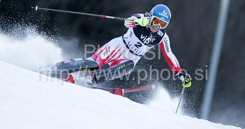 Zagreb ,Croatia - 03.01.2010 : Second after first run, Marlies Schild of Austria skiing in first run of women Snow queen trophy slalom World Cup race in Zagreb, Croatia. Slalom race of Women Audi FIS Alpine skiing World Cup 2009-10 was held in on Sljeme above Zagreb, Croatia, on 3rd of January 2010. Photo by: Primoz Jeroncic