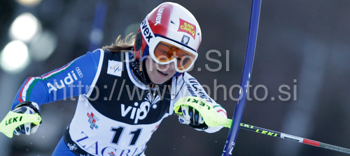 : Nicole Gius of Italy skiing in first run of women Snow queen trophy slalom World Cup race in Zagreb, Croatia. Slalom race of Women Audi FIS Alpine skiing World Cup 2009-10 was held in on Sljeme above Zagreb, Croatia, on 3rd of January 2010.