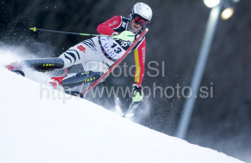 : Fanny Chmelar of Germany skiing in first run of women Snow queen trophy slalom World Cup race in Zagreb, Croatia. Slalom race of Women Audi FIS Alpine skiing World Cup 2009-10 was held in on Sljeme above Zagreb, Croatia, on 3rd of January 2010.