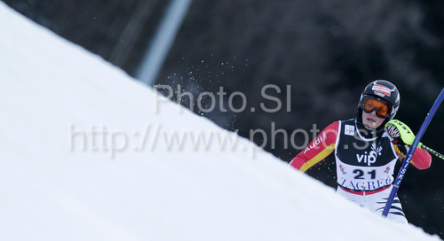 : Christina Geiger of Germany skiing in first run of women Snow queen trophy slalom World Cup race in Zagreb, Croatia. Slalom race of Women Audi FIS Alpine skiing World Cup 2009-10 was held in on Sljeme above Zagreb, Croatia, on 3rd of January 2010.