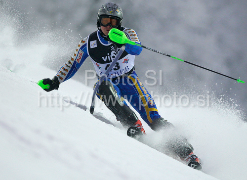 Zagreb ,Croatia - 06.01.2010 : Jens Byggmark of Sweden skiing in first run of men Snow queen trophy slalom World Cup race in Zagreb, Croatia. Slalom race of Men Audi FIS Alpine skiing World Cup 2009-10 was held on Sljeme above Zagreb, Croatia, on 6th of January 2010. Photo by: Primoz Jeroncic