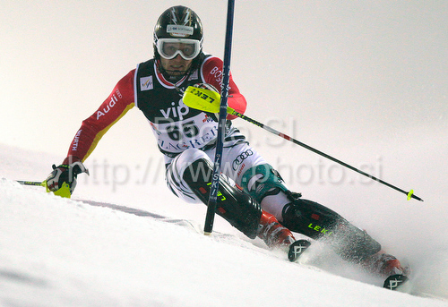 : Dominik Stehle of Germany skiing in first run of men Snow queen trophy slalom World Cup race in Zagreb, Croatia. Slalom race of Men Audi FIS Alpine skiing World Cup 2009-10 was held on Sljeme above Zagreb, Croatia, on 6th of January 2010.