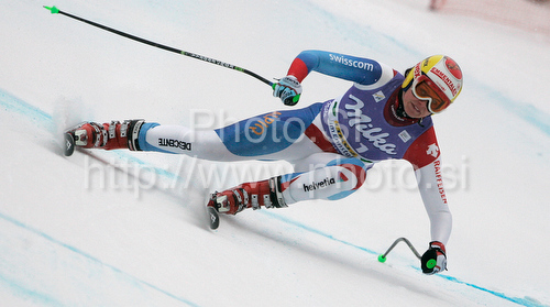 : Second placed Nadja Kamer of Switzerland skiing during women downhill race of Audi FIS alpine skiing World Cup in Haus im Ennstal, Austria. Downhill race of Women Audi FIS Alpine skiing World Cup 2009-10 was held in Haus im Ennstal, Austria, on 9th of January 2010.