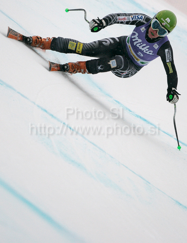 : Ninth placed Stacey Cook of USA skiing during women downhill race of Audi FIS alpine skiing World Cup in Haus im Ennstal, Austria. Downhill race of Women Audi FIS Alpine skiing World Cup 2009-10 was held in Haus im Ennstal, Austria, on 9th of January 2010.