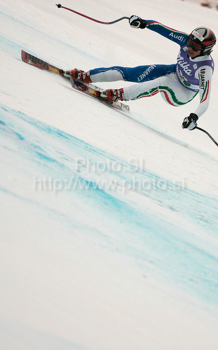 : Lucia Recchia of Italy skiing during women downhill race of Audi FIS alpine skiing World Cup in Haus im Ennstal, Austria. Downhill race of Women Audi FIS Alpine skiing World Cup 2009-10 was held in Haus im Ennstal, Austria, on 9th of January 2010.