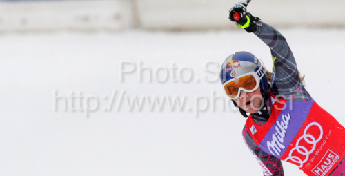 Haus im Ennstal ,Austria - 09.01.2010 : Winner Lindsey Vonn of USA reacts in finish of women downhill race of Audi FIS alpine skiing World Cup in Haus im Ennstal, Austria. Downhill race of Women Audi FIS Alpine skiing World Cup 2009-10 was held in Haus im Ennstal, Austria, on 9th of January 2010. Photo by: Leena Jeroncic