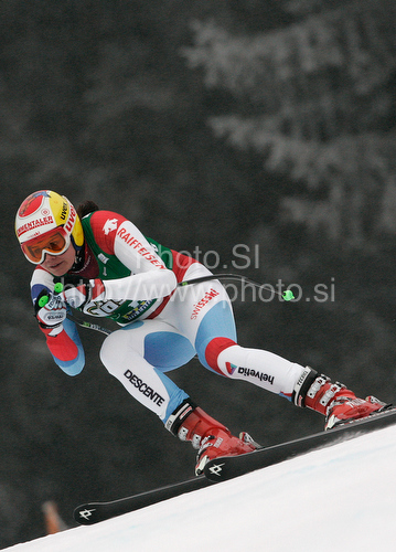 : Seventh placed Nadja Kamer of Switzerland skiing during women Super-G race of Audi FIS alpine skiing World Cup in Haus im Ennstal, Austria. Super-G race of Women Audi FIS Alpine skiing World Cup 2009-10 was held in Haus im Ennstal, Austria, on 10th of January 2010.