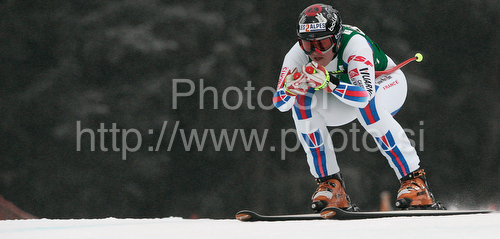 : Marion Rolland of France skiing during women Super-G race of Audi FIS alpine skiing World Cup in Haus im Ennstal, Austria. Super-G race of Women Audi FIS Alpine skiing World Cup 2009-10 was held in Haus im Ennstal, Austria, on 10th of January 2010.