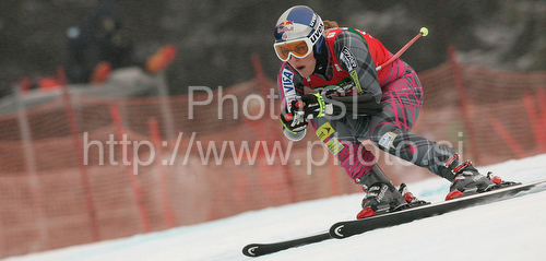 : Winner Lindsey Vonn of USA skiing during women Super-G race of Audi FIS alpine skiing World Cup in Haus im Ennstal, Austria. Super-G race of Women Audi FIS Alpine skiing World Cup 2009-10 was held in Haus im Ennstal, Austria, on 10th of January 2010.