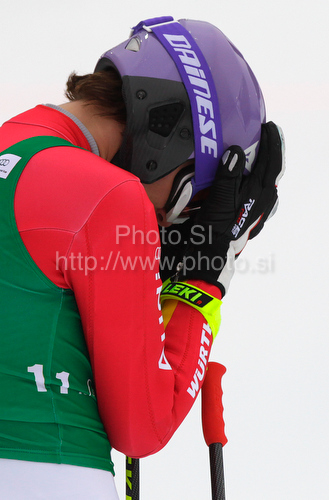 : Maria Riesch of Germany reacts in finish of women Super-G race of Audi FIS alpine skiing World Cup in Haus im Ennstal, Austria. Super-G race of Women Audi FIS Alpine skiing World Cup 2009-10 was held in Haus im Ennstal, Austria, on 10th of January 2010.