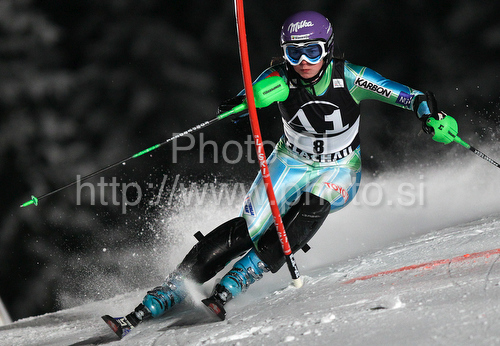 : Tina Maze of Slovenia skiing in first run of Women slalom race of Audi FIS alpine skiing World Cup in Flachau, Austria. Slalom race of Women Audi FIS Alpine skiing World Cup 2009-10 was held in Flachau, Austria, on 12th of January 2010.