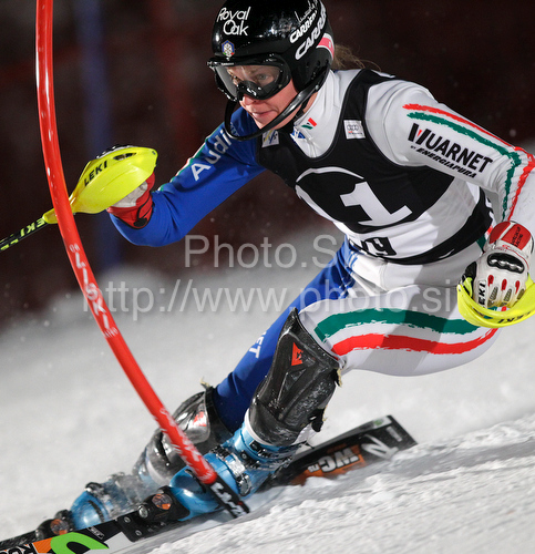 : Manuela Moelgg of Italy skiing in first run of Women slalom race of Audi FIS alpine skiing World Cup in Flachau, Austria. Slalom race of Women Audi FIS Alpine skiing World Cup 2009-10 was held in Flachau, Austria, on 12th of January 2010.