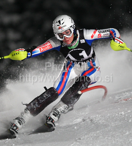 : Tenth after first run Nastasia Noens of France skiing in first run of Women slalom race of Audi FIS alpine skiing World Cup in Flachau, Austria. Slalom race of Women Audi FIS Alpine skiing World Cup 2009-10 was held in Flachau, Austria, on 12th of January 2010.