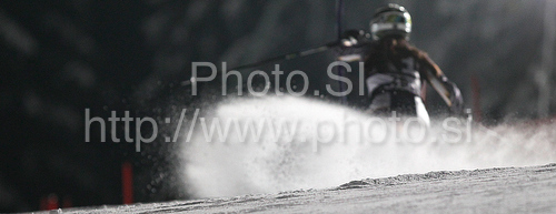 : Sanni Leinonen of Finland skiing in first run of Women slalom race of Audi FIS alpine skiing World Cup in Flachau, Austria. Slalom race of Women Audi FIS Alpine skiing World Cup 2009-10 was held in Flachau, Austria, on 12th of January 2010.