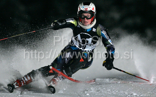 : Nina Loeseth of Norway skiing in first run of Women slalom race of Audi FIS alpine skiing World Cup in Flachau, Austria. Slalom race of Women Audi FIS Alpine skiing World Cup 2009-10 was held in Flachau, Austria, on 12th of January 2010.