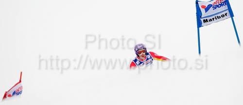 Maribor ,Slovenia - 16.01.2010 : Fourth after first run Maria Riesch of Germany skiing in first run of Women giant slalom race of Audi FIS alpine skiing World Cup in Maribor, Slovenia. Giant slalom race of Women Audi FIS Alpine skiing World Cup 2009-10 was held in Maribor, Slovenia, on 16th of January 2010. Photo by: Primoz Jeroncic