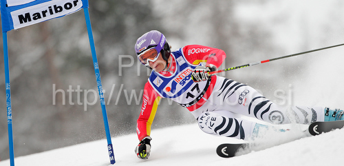 Maribor ,Slovenia - 16.01.2010 : Fourth after first run Maria Riesch of Germany skiing in first run of Women giant slalom race of Audi FIS alpine skiing World Cup in Maribor, Slovenia. Giant slalom race of Women Audi FIS Alpine skiing World Cup 2009-10 was held in Maribor, Slovenia, on 16th of January 2010. Photo by: Primoz Jeroncic
