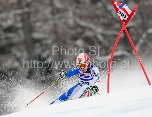 : Nicole Gius of Italy skiing in first run of Women giant slalom race of Audi FIS alpine skiing World Cup in Maribor, Slovenia. Giant slalom race of Women Audi FIS Alpine skiing World Cup 2009-10 was held in Maribor, Slovenia, on 16th of January 2010.