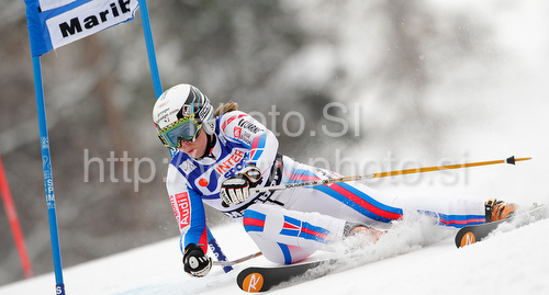 : Anne-Sophie Barthet of France skiing in first run of Women giant slalom race of Audi FIS alpine skiing World Cup in Maribor, Slovenia. Giant slalom race of Women Audi FIS Alpine skiing World Cup 2009-10 was held in Maribor, Slovenia, on 16th of January 2010.