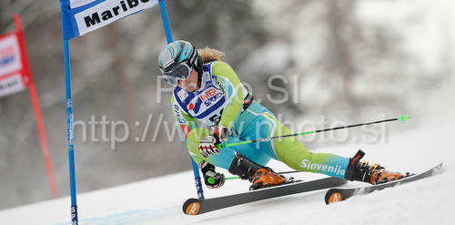 : Ana Drev of Slovenia skiing in first run of Women giant slalom race of Audi FIS alpine skiing World Cup in Maribor, Slovenia. Giant slalom race of Women Audi FIS Alpine skiing World Cup 2009-10 was held in Maribor, Slovenia, on 16th of January 2010.
