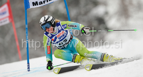 : Marusa Ferk of Slovenia skiing in first run of Women giant slalom race of Audi FIS alpine skiing World Cup in Maribor, Slovenia. Giant slalom race of Women Audi FIS Alpine skiing World Cup 2009-10 was held in Maribor, Slovenia, on 16th of January 2010.