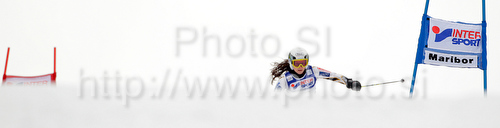 : Sanni Leinonen of Finland skiing in first run of Women giant slalom race of Audi FIS alpine skiing World Cup in Maribor, Slovenia. Giant slalom race of Women Audi FIS Alpine skiing World Cup 2009-10 was held in Maribor, Slovenia, on 16th of January 2010.