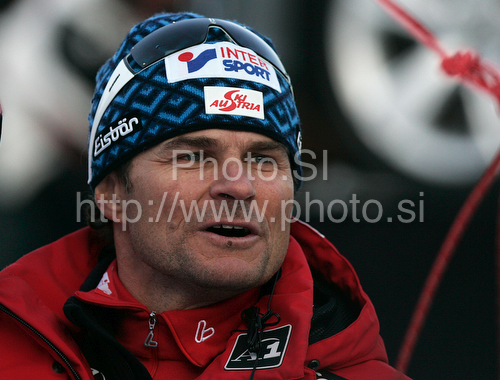 : Head coach of Austrian team, Herbert Mandl in finish of second run of Women giant slalom race of Audi FIS alpine skiing World Cup in Maribor, Slovenia. Giant slalom race of Women Audi FIS Alpine skiing World Cup 2009-10 was held in Maribor, Slovenia, on 16th of January 2010.