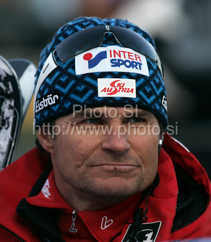 : Head coach of Austrian team, Herbert Mandl in finish of second run of Women giant slalom race of Audi FIS alpine skiing World Cup in Maribor, Slovenia. Giant slalom race of Women Audi FIS Alpine skiing World Cup 2009-10 was held in Maribor, Slovenia, on 16th of January 2010.