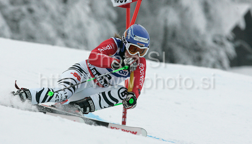 : Viktoria Rebensburg of Germany skiing in second run of Women giant slalom race of Audi FIS alpine skiing World Cup in Maribor, Slovenia. Giant slalom race of Women Audi FIS Alpine skiing World Cup 2009-10 was held in Maribor, Slovenia, on 16th of January 2010.