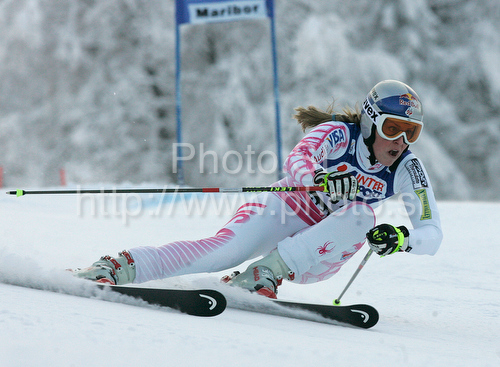: Lindsey Vonn of USA skiing in second run of Women giant slalom race of Audi FIS alpine skiing World Cup in Maribor, Slovenia. Giant slalom race of Women Audi FIS Alpine skiing World Cup 2009-10 was held in Maribor, Slovenia, on 16th of January 2010.
