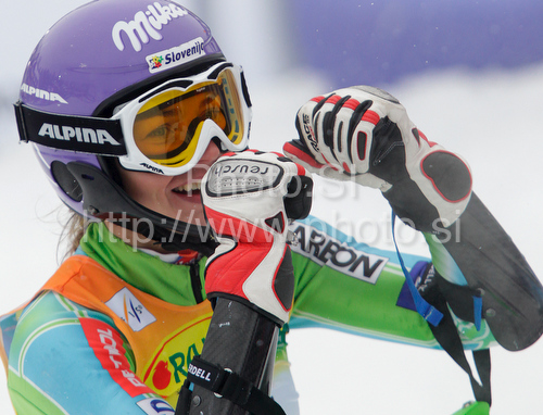 Maribor ,Slovenia - 17.01.2010 : Second placed Tina Maze of Slovenia reacts in finish of second run of Women slalom race of Audi FIS alpine skiing World Cup in Maribor, Slovenia. Slalom race of Women Audi FIS Alpine skiing World Cup 2009-10 was held in Maribor, Slovenia, on 17th of January 2010. Photo by: Primoz Jeroncic
