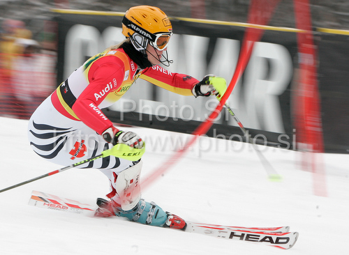 : Susanne Riesch of Germany skiing in second run of Women slalom race of Audi FIS alpine skiing World Cup in Maribor, Slovenia. Slalom race of Women Audi FIS Alpine skiing World Cup 2009-10 was held in Maribor, Slovenia, on 17th of January 2010.
