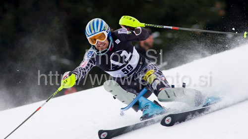 Kitzbuhel ,Austria - 24.01.2010 : Nolan Kasper (USA) attacks a control gate while competing in the mens Hahnenkamm slalom race part of the 70th Hahnenkamm Rennen race weekend, which is a fixture on the 2009/10 Audi FIS Alpine Skiing World Cup. Slalom race of men Audi FIS Alpine skiing World cup was held in Kitzbuhel, Austria, on 24th of January 2010. Photo by: Mitchell Gunn / PhotoSI