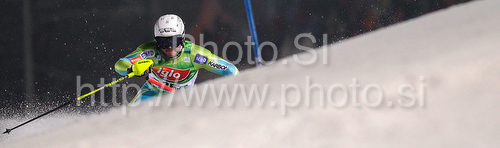 : Mitja Dragsic of Slovenia skiing in first run of Men Night slalom race of Audi FIS alpine skiing World Cup in Schladming, Austria. Slalom race of Men Audi FIS Alpine skiing World Cup 2009-10 was held in Schladming, Austria, on 26th of January 2010.
