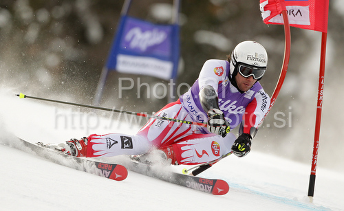 : Tenth after first run Philipp Schoerghofer of Austria skiing in first run of Men giant slalom race of Audi FIS alpine skiing World Cup in Kranjska Gora, Slovenia. Giant slalom race of Men Audi FIS Alpine skiing World Cup 2009-10, which substituted canceled giant slalom race from Adelboden, Switzerland, was held on Friday in Kranjska Gora, Slovenia, on 29th of January 2010.