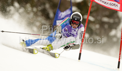 : Omar Longhi of Italy skiing in first run of Men giant slalom race of Audi FIS alpine skiing World Cup in Kranjska Gora, Slovenia. Giant slalom race of Men Audi FIS Alpine skiing World Cup 2009-10, which substituted canceled giant slalom race from Adelboden, Switzerland, was held on Friday in Kranjska Gora, Slovenia, on 29th of January 2010.