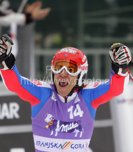Kranjska Gora ,Slovenia - 29.01.2010 : Sixth placed Cyprien Richard of France reacts in finish of second run of Men giant slalom race of Audi FIS alpine skiing World Cup in Kranjska Gora, Slovenia. Giant slalom race of Men Audi FIS Alpine skiing World Cup 2009-10, which substituted canceled giant slalom race from Adelboden, Switzerland, was held on Friday in Kranjska Gora, Slovenia, on 29th of January 2010. Photo by: Primoz Jeroncic