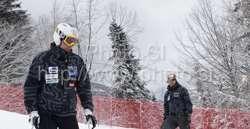 : Marcus Sandell of Finland on inspection of first run of second Men giant slalom race of Audi FIS alpine skiing World Cup in Kranjska Gora, Slovenia. Second giant slalom race of Men Audi FIS Alpine skiing World Cup 2009-10, was held on Saturday in Kranjska Gora, Slovenia, on 30th of January 2010.