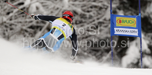 : Leader after first run Kjetil Jansrud of Norway skiing in first run of second Men giant slalom race of Audi FIS alpine skiing World Cup in Kranjska Gora, Slovenia. Second giant slalom race of Men Audi FIS Alpine skiing World Cup 2009-10, was held on Saturday in Kranjska Gora, Slovenia, on 30th of January 2010.