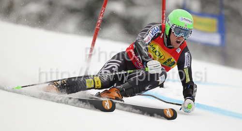 : Fourth after first run Ted Ligety of USA skiing in first run of second Men giant slalom race of Audi FIS alpine skiing World Cup in Kranjska Gora, Slovenia. Second giant slalom race of Men Audi FIS Alpine skiing World Cup 2009-10, was held on Saturday in Kranjska Gora, Slovenia, on 30th of January 2010.