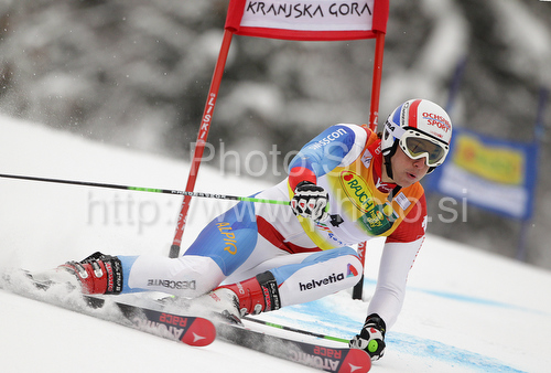 : Third after first run Carlo Janka of Switzerland skiing in first run of second Men giant slalom race of Audi FIS alpine skiing World Cup in Kranjska Gora, Slovenia. Second giant slalom race of Men Audi FIS Alpine skiing World Cup 2009-10, was held on Saturday in Kranjska Gora, Slovenia, on 30th of January 2010.