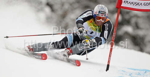 : Ninth placed after first run Aksel Lund Svindal of Norway skiing in first run of second Men giant slalom race of Audi FIS alpine skiing World Cup in Kranjska Gora, Slovenia. Second giant slalom race of Men Audi FIS Alpine skiing World Cup 2009-10, was held on Saturday in Kranjska Gora, Slovenia, on 30th of January 2010.