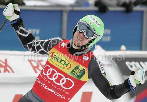 Kranjska Gora ,Slovenia - 30.01.2010 : Third placed Ted Ligety of USA reacts in finish of second run of second Men giant slalom race of Audi FIS alpine skiing World Cup in Kranjska Gora, Slovenia. Second giant slalom race of Men Audi FIS Alpine skiing World Cup 2009-10, was held on Saturday in Kranjska Gora, Slovenia, on 30th of January 2010. Photo by: Leena Jeroncic