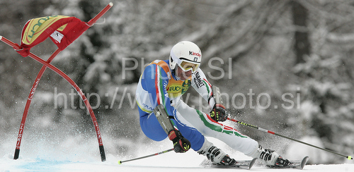 : Fourth placed Massimiliano Blardone of Italy skiing in second run of second Men giant slalom race of Audi FIS alpine skiing World Cup in Kranjska Gora, Slovenia. Second giant slalom race of Men Audi FIS Alpine skiing World Cup 2009-10, was held on Saturday in Kranjska Gora, Slovenia, on 30th of January 2010.